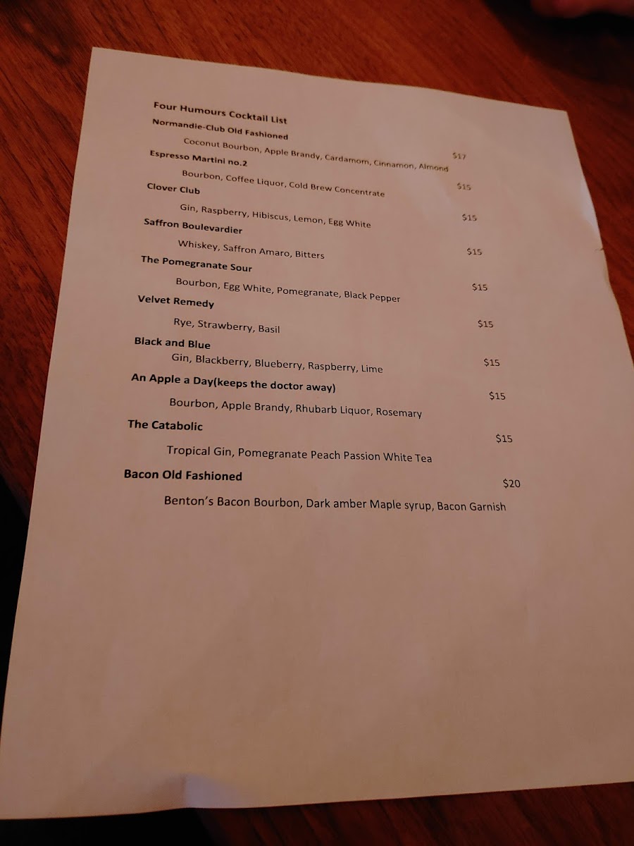 The staff is renowned for their expertise and warm hospitality, ensuring every visit is memorable. Customers like Jordan Bondurant rave about the accommodating nature of the team, while Kaitlyn Haigh praises the cozy atmosphere paired with standout drinks, such as the Espresso Martini No.2. With a commitment to quality and innovation, Four Humours is a must-visit for any cocktail enthusiast.